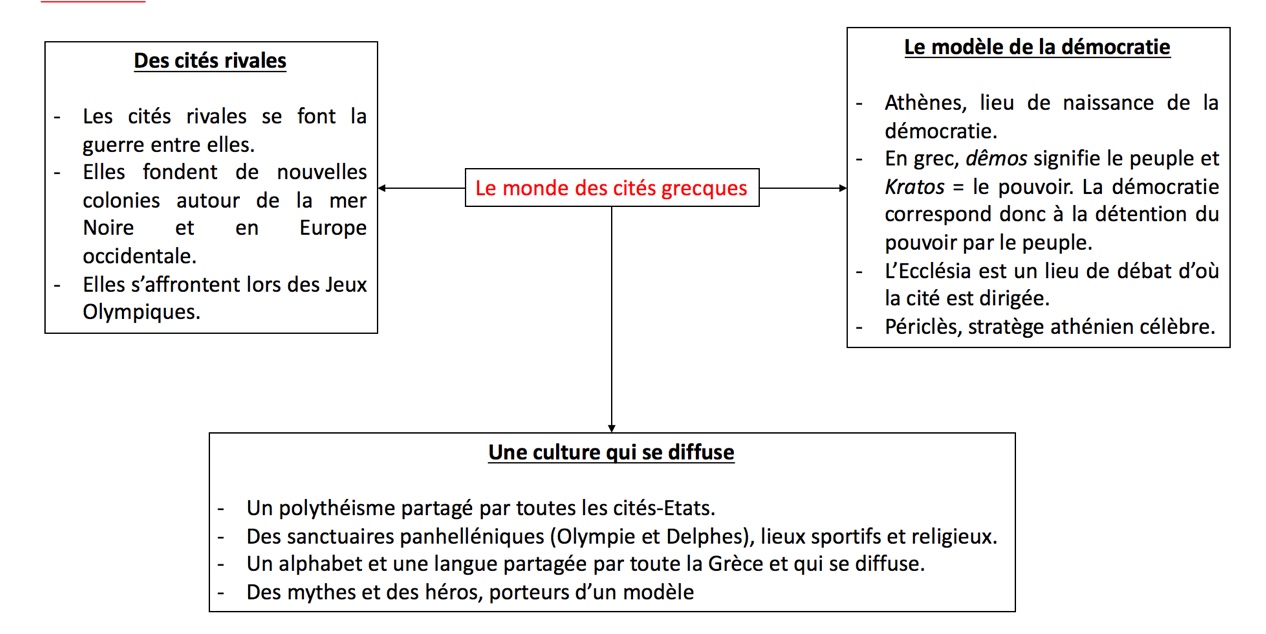 Je dois être capable de connaître la signification des mots-clés suivants : Civilisation, Agora, Acropole, Colonie, Métropole, Démocratie, Tyrannie, Oligarchie, Ecclésia, Stratège, Théâtre, Héros, Polythéisme, Sacrifice, Sanctuaire, Panhellénique.